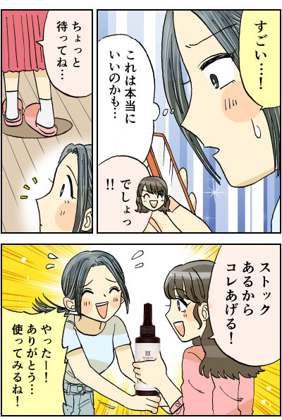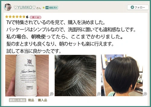 使い始めて同じ年代のママ友から「なんでそんなにツヤツヤ黒髪になったの?白髪染めじゃそんな風にならないよね!?」って聞かれるぐらいになりました!とても嬉しいです♪